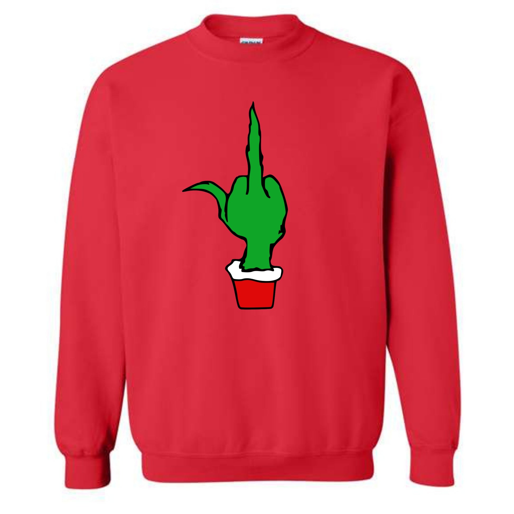 Christmas Green Finger Holiday Crewneck Sweatshirt Middle Finger Pullover Sweater Small to 5XL