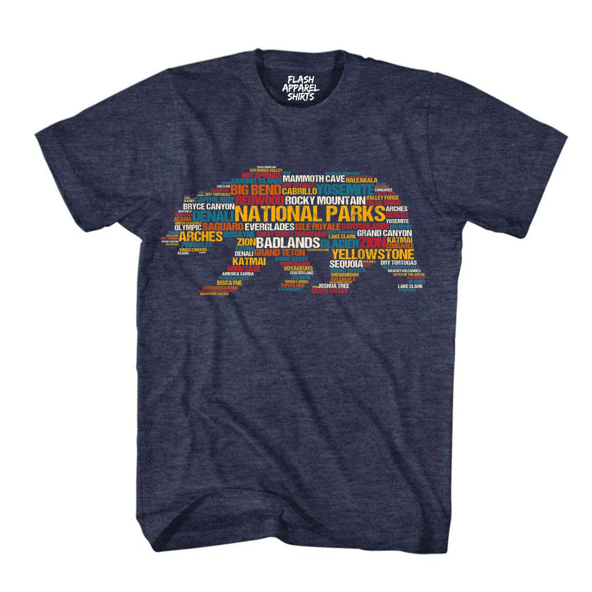 National Parks Shirt USA Park List Word Cloud Bear Camping & Hiking T-Shirt Outdoor Wildlife Nature Tee