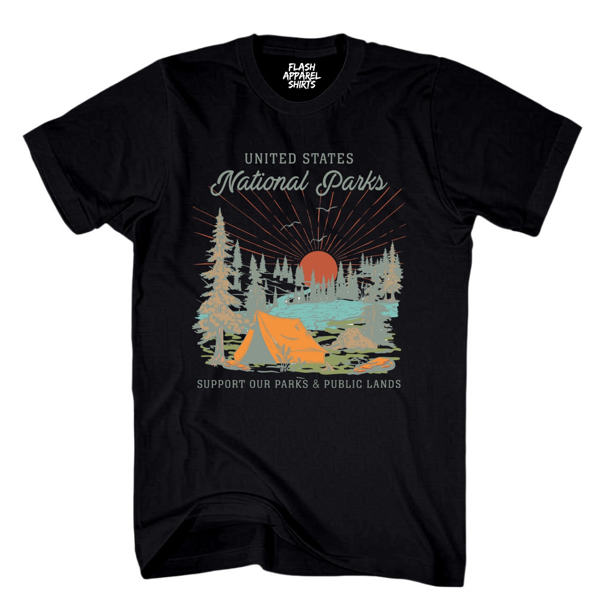 USA National Parks Shirt Support our Parks & Public Land Trees Tent Camping & Hiking T-Shirt Outdoor Wildlife Nature Tee